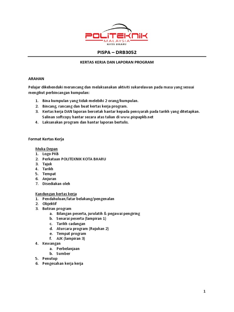 Contoh kertas kerja program kesedaran ts25 kepada warga sekolah pengenalan program. Laporan Magang Mahasiswa Jurnalistik. CONTOH ISI KANDUNGAN 10 PENGENALAN 20 PENCAPAIAN OBJEKTIF Nyatakan adakah objektif tercapai seperti yang dirancang dalam kertas kerja yang diluluskan.